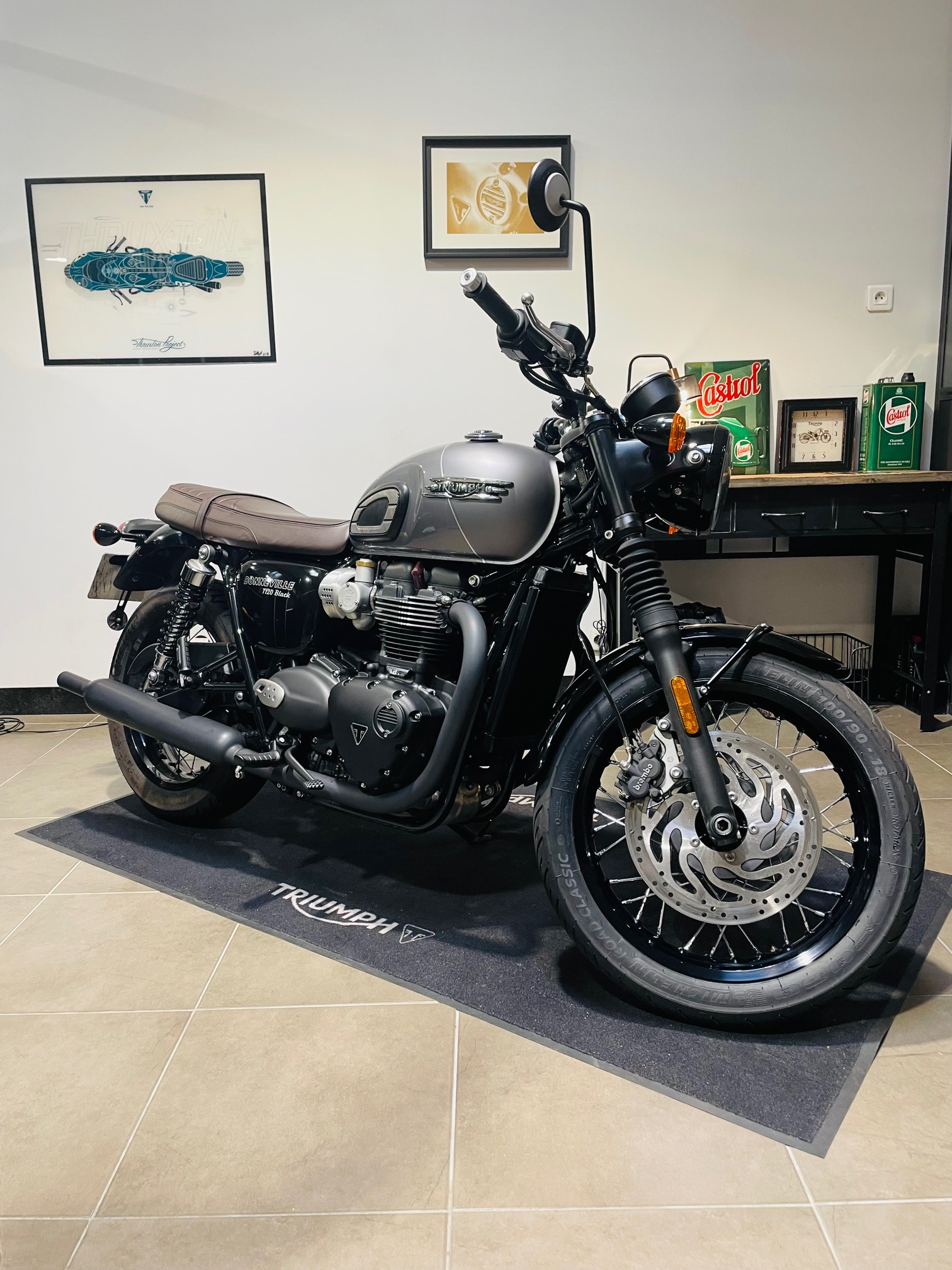 TRIUMPHH BONNEVILLE T120 BLACK, Graphite / matt graphite, 1ère main, 1ère mise en circulation le 06/02/2025, garantie constructeur + assistance Triumph pendant 2 ans + 500 euros d’accessoires ofert.