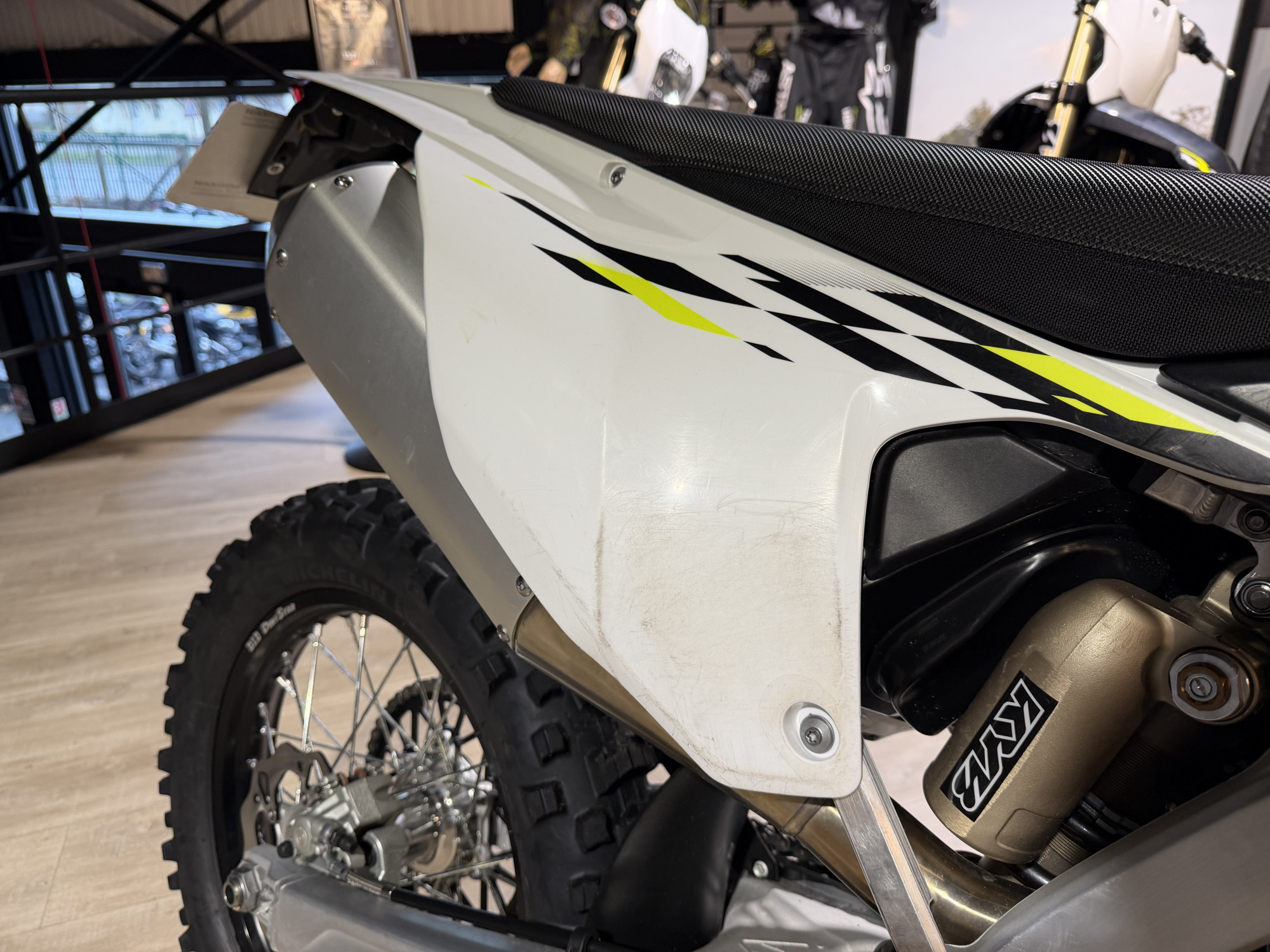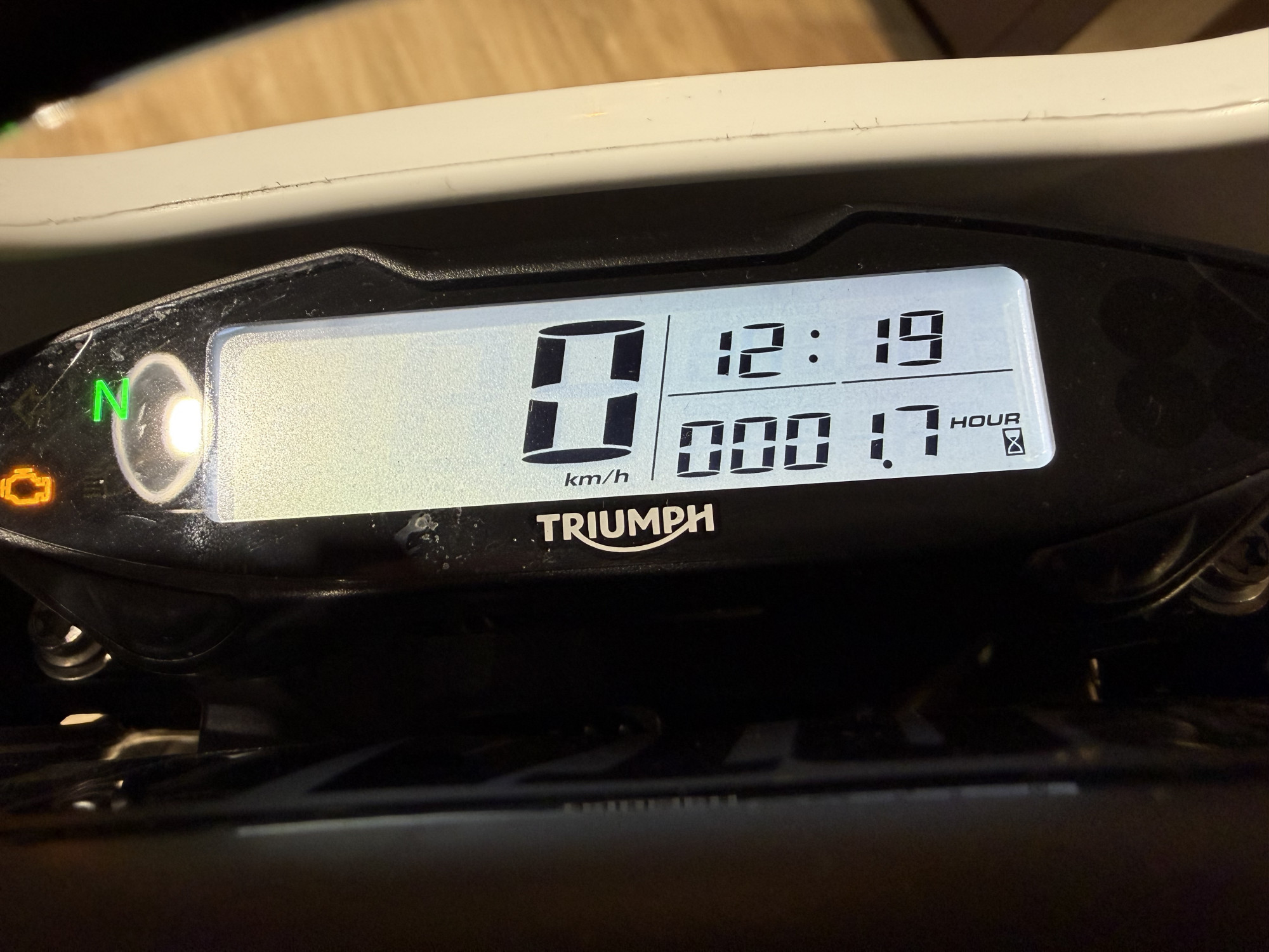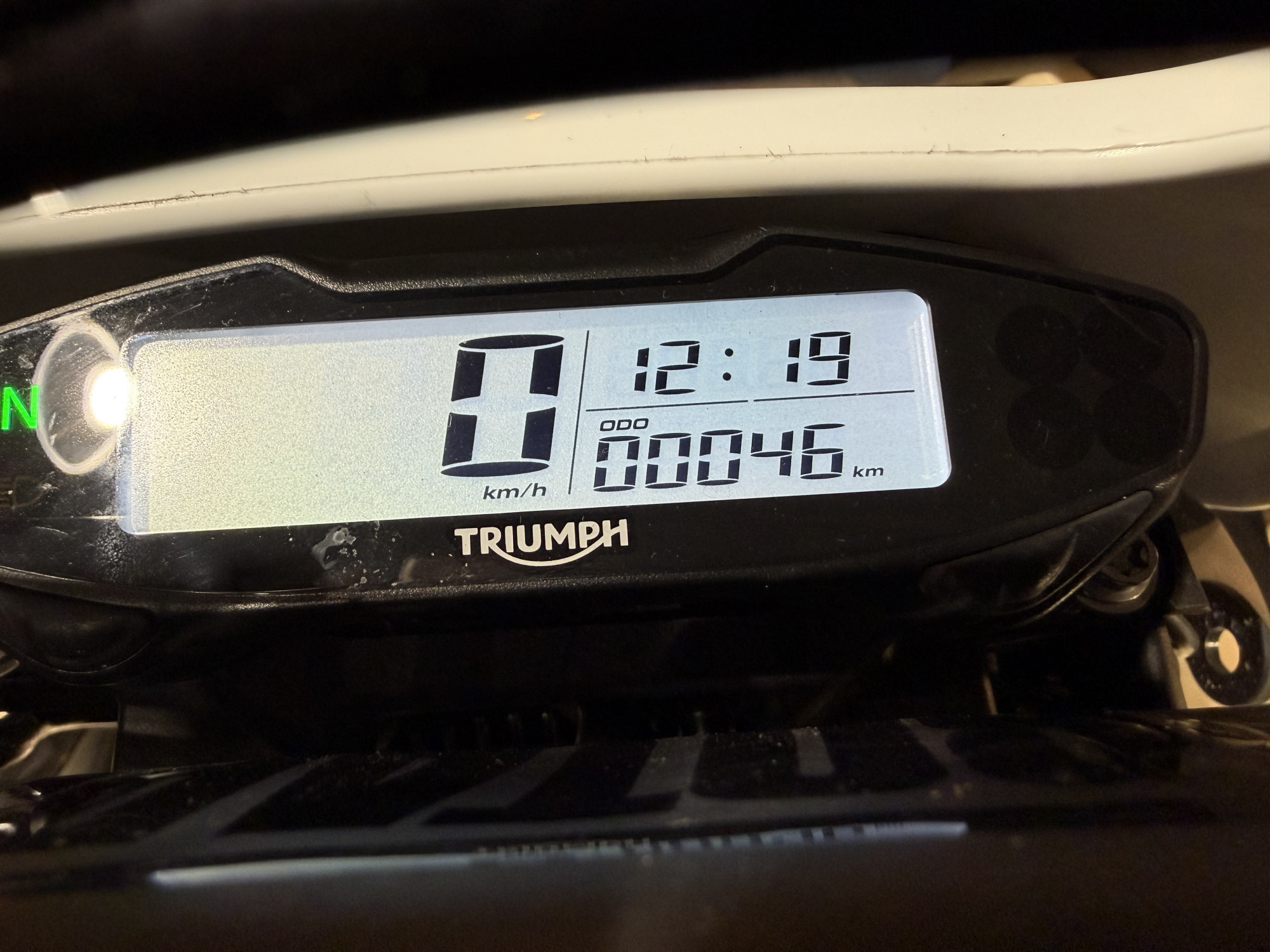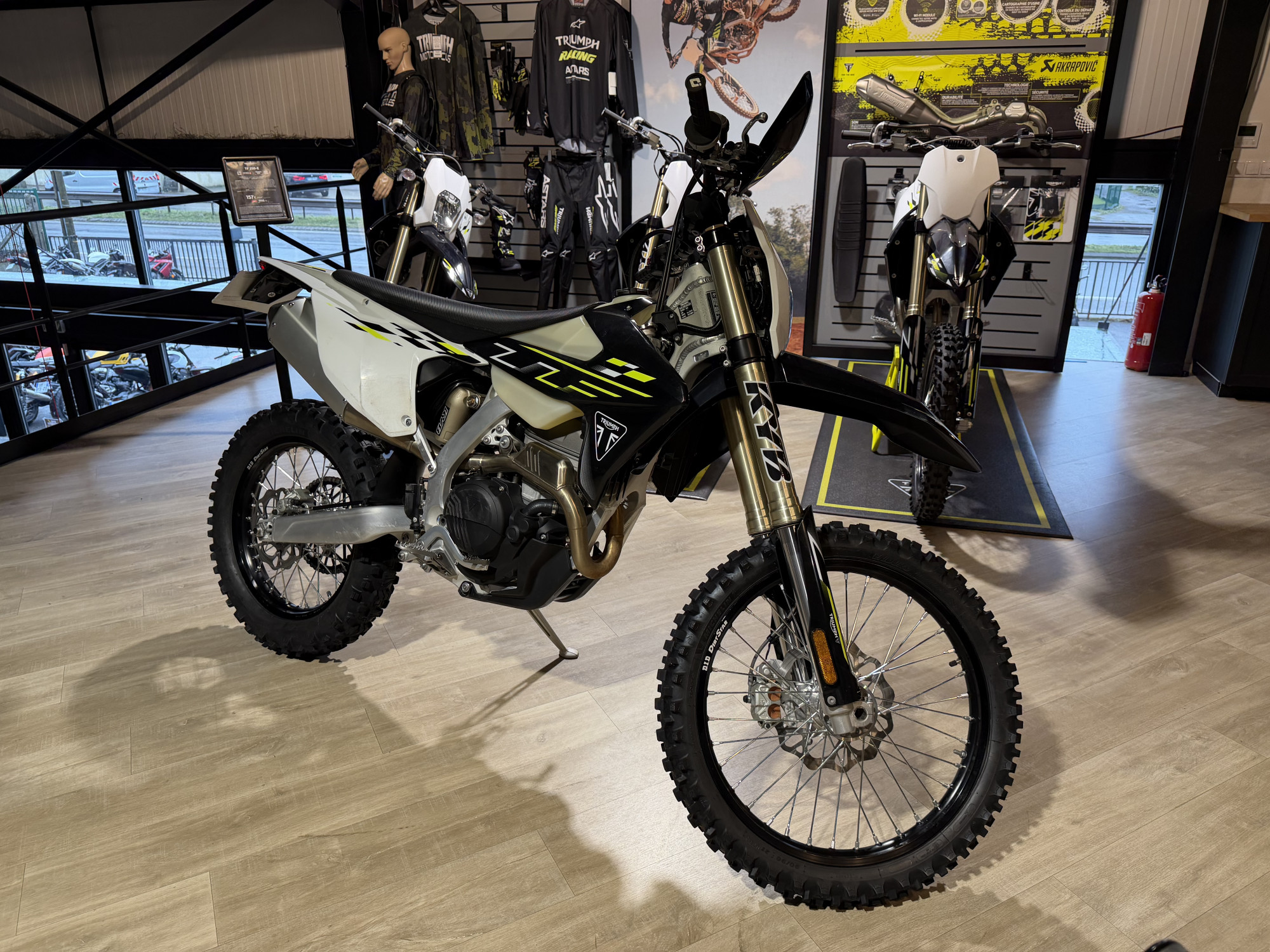 Elle appartient à la concession Triumph, elle a eu 1.7h d’essais par nos pilotes partenaires, elle n’a clairement pas été maltraitée.